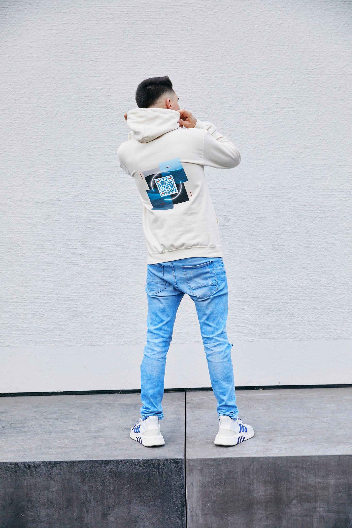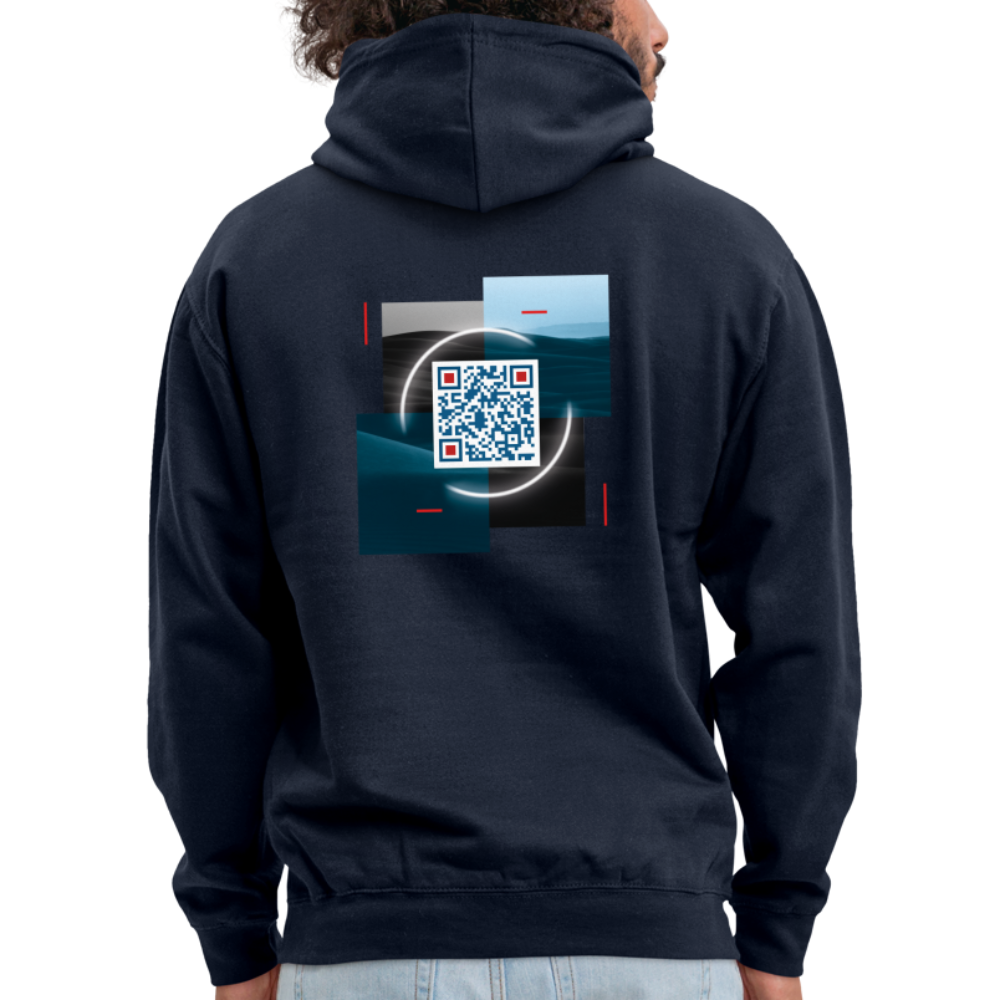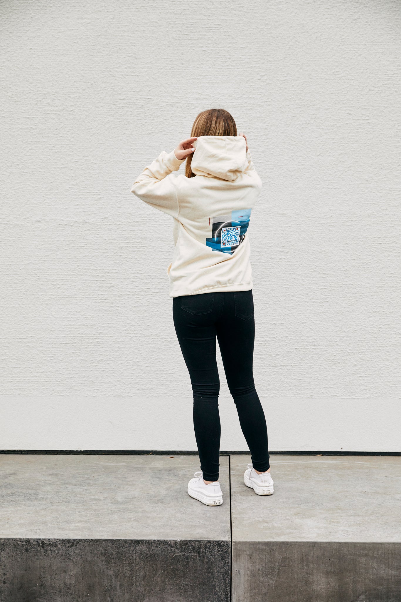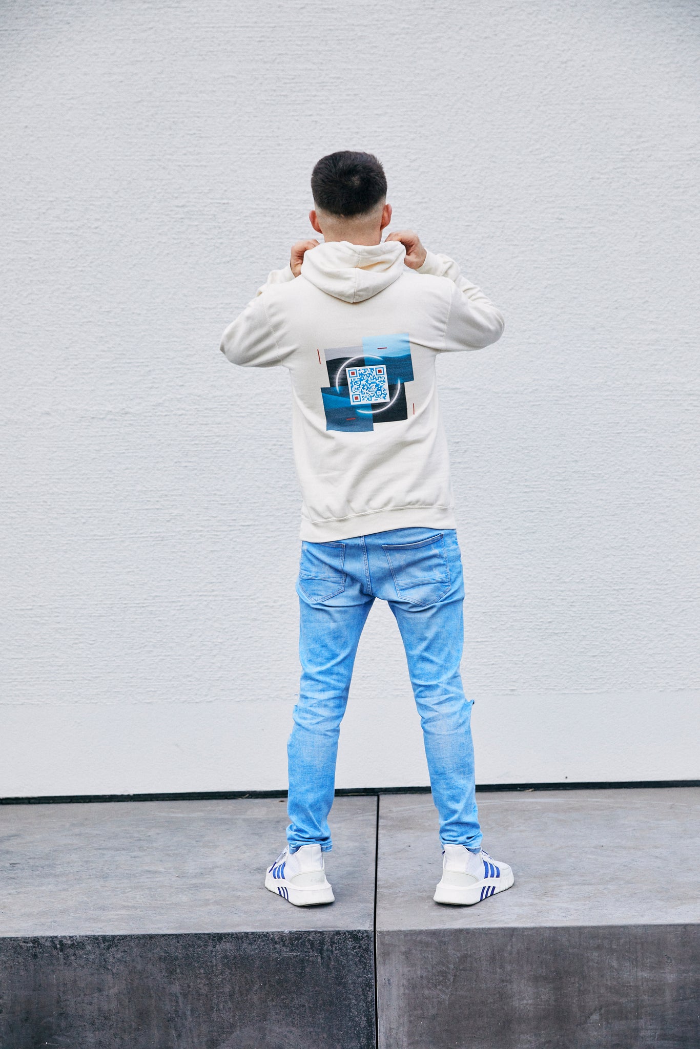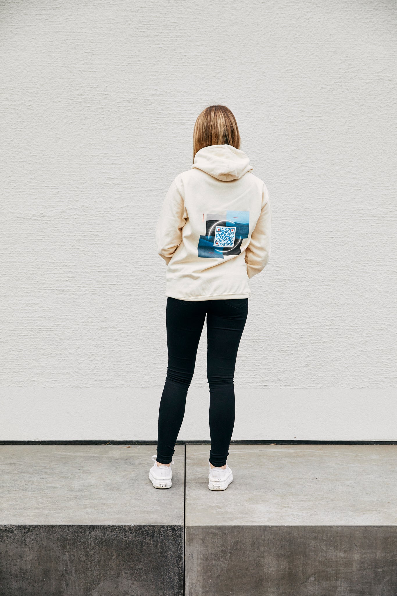 Stich mit dem kreativen Spiral Desert Swetch aus der Menge heraus und fokussiere die Blicke direkt auf den QR Code auf deinem Rücken. Mit diesem unverwechselbaren Hoodie fällst du sofort auf!
